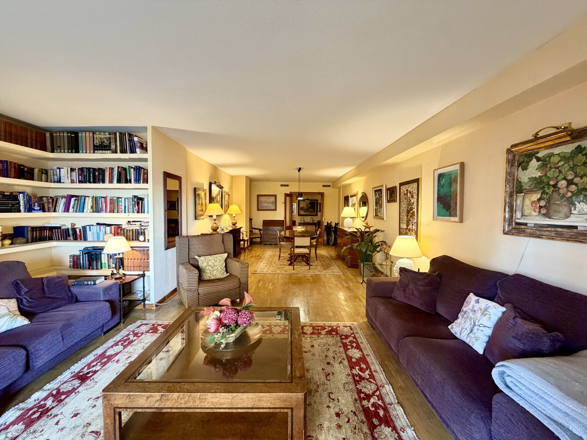 Die Küche und zwei der Badezimmer wurden renoviert; der Rest der Wohnung befindet sich im Originalzustand.